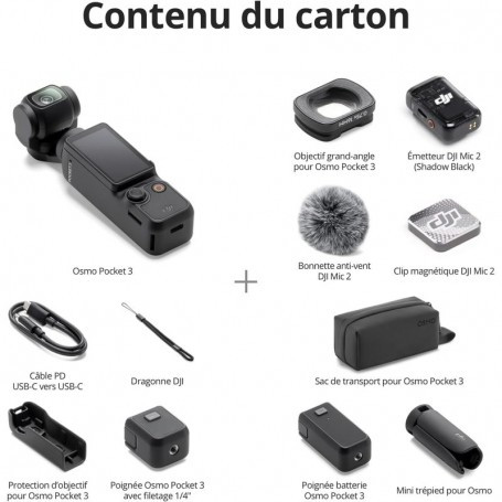 La DJI Osmo Pocket 3 – Creator Bundle est une caméra compacte et puissante pensée pour les créateurs de contenu, vloggers et passionnés de vidéo. Équipée d’un capteur CMOS 1 pouce, elle capture des images d’une qualité exceptionnelle, même en basse lumière, avec une vidéo fluide jusqu’en 4K à 120 images/seconde.